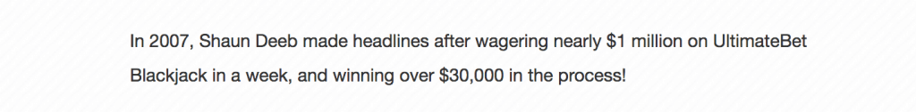 Deeb is known for his successful poker game play, having earned several tournament titles throughout his career, particularly from PokerStars gaming. In 2007, Deeb decided to play UltimateBet Blackjack, taking a break from poker. After a week, he had earned more than $30,000 by playing the game! Just one of many examples as to how poker players transition into other gaming options.