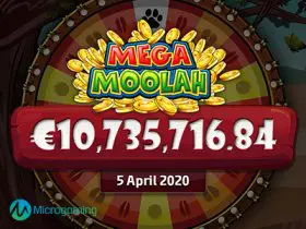Source: “Microgaming’s Mega Moolah awards €10.7 million jackpot“Microgaming. April 8, 2020.