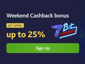7Bit Casino is rolling out a weekend cashback bonus for its patrons. Players must be registered members of the platform for a chance to claim up to a 25% bonus.