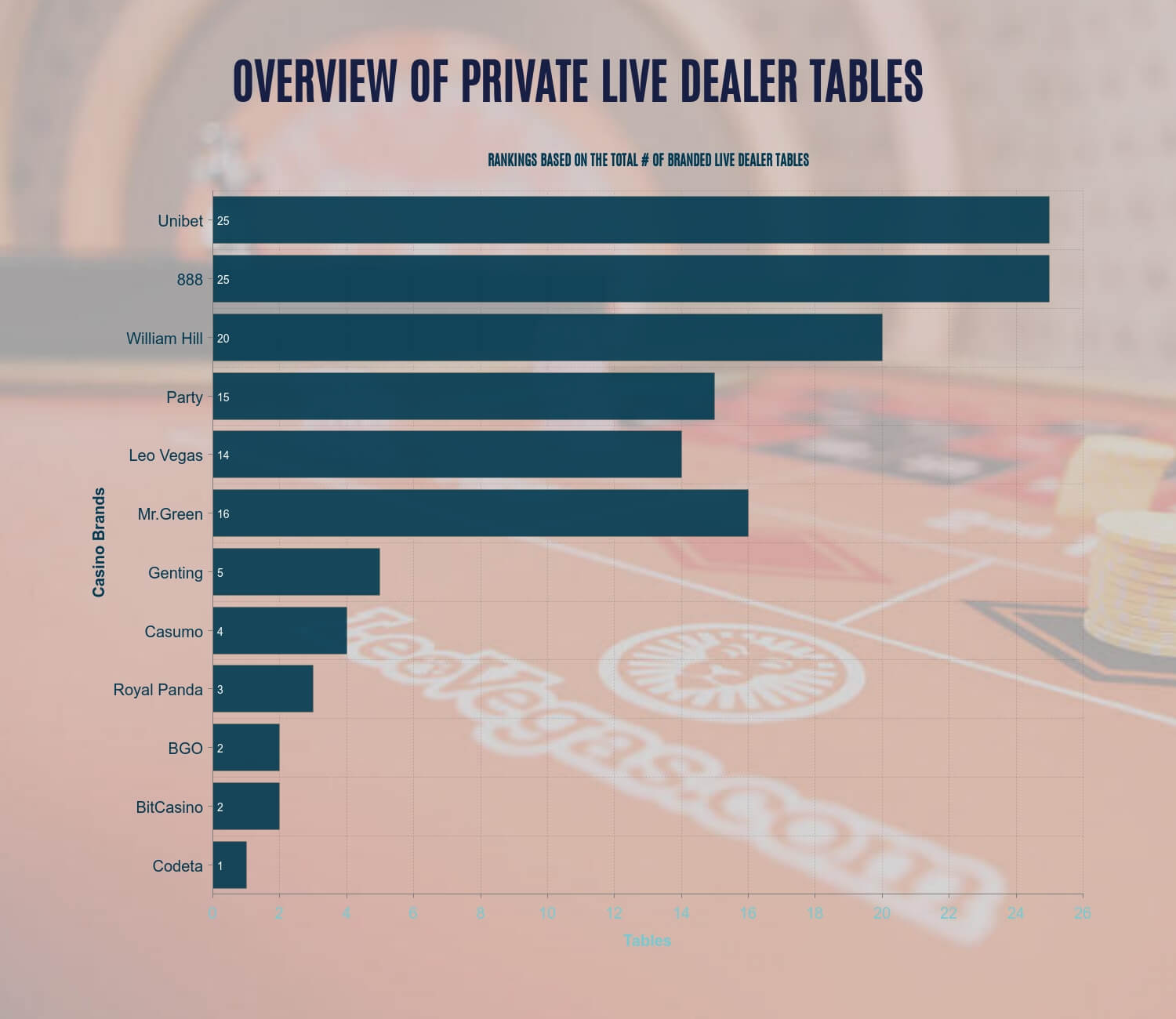 Private live dealer tables are a relatively new phenomenon at live online casinos. Mostly they are still provided by Evolution Gaming, who have several studios across the world – including Malta, Canada and Latvia. Other companies, such as PlayTech and NetEnt, are entering the market though.