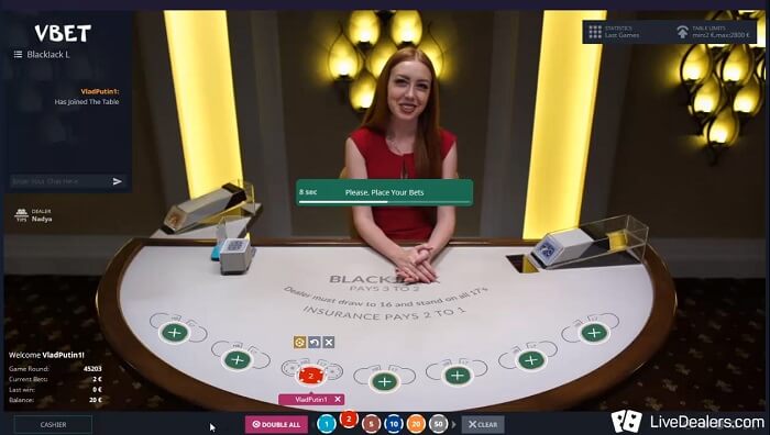 Supported side bets include Perfect pairs, Honey Bonus and Lucky 7, the latter paying up to 500:1 for 3 suited 7's