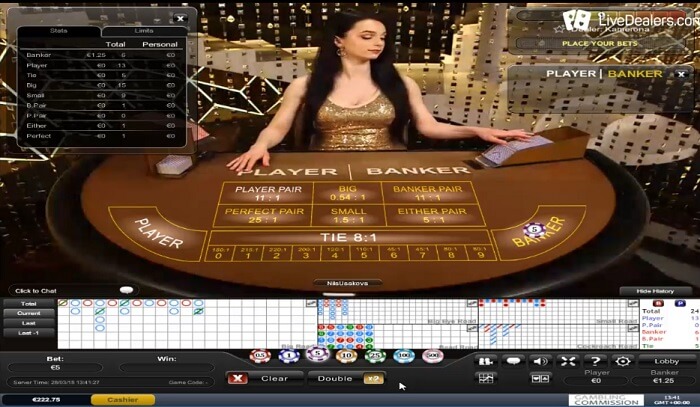 Live Baccarat playing in upscale-looking Playtech studio painted in gold