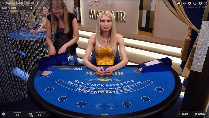 Mayfair Blackjack is a nice VIP variant with all the ingredients one would expect to find in an Evolution product. High streaming quality and well-organised layout are some of their trademarks, along with extras such as Insurance and side bets. I like the fact the dealer will peek at their down-card to check for Blackjack, thus minimising potential losses.VIP element has been taken care of by placing the table in an upscale-looking environment and providing appropriately trained dealers. Not sure what Mayfair stands for, though the whole thing is made to look as if you’re playing in a fancy casino of the same name.