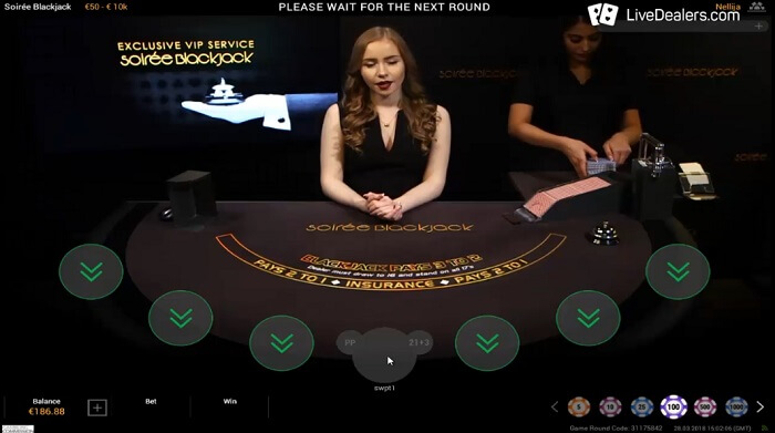 It seems Playtech has launched Soiree Blackjack to compete with Evolution's Salon Privee tables, and I have to say their attempt looks very VIP. What's even better is that they did more than simply dress-up the environment to make this a high-roller game. You're bound to feel like a VIP when offered to change shoes and keep the dealer that's been handing you great cards. Other than these little perks, one can still enjoy standard game features including the two popular side bets. Minimum limits generally seem lower than those usually found at VIP tables, but that could be a temporary thing to stimulate trial; the game was launched as recently as March 2018 and is therefore still very new.